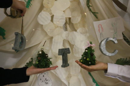 出来上がったら自分の机や、お家のテーブルに飾って、クリスマス気分をたのしんでね!